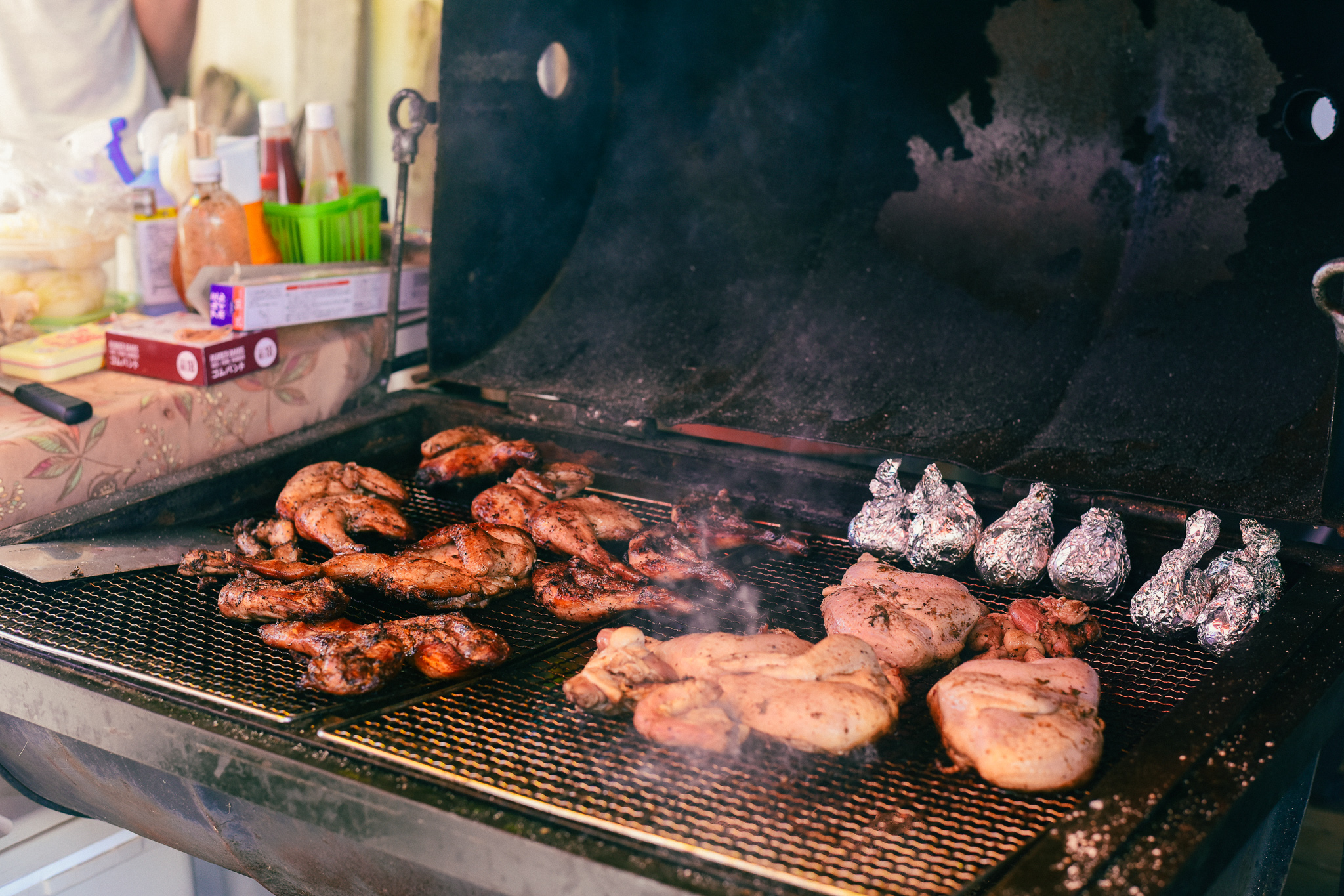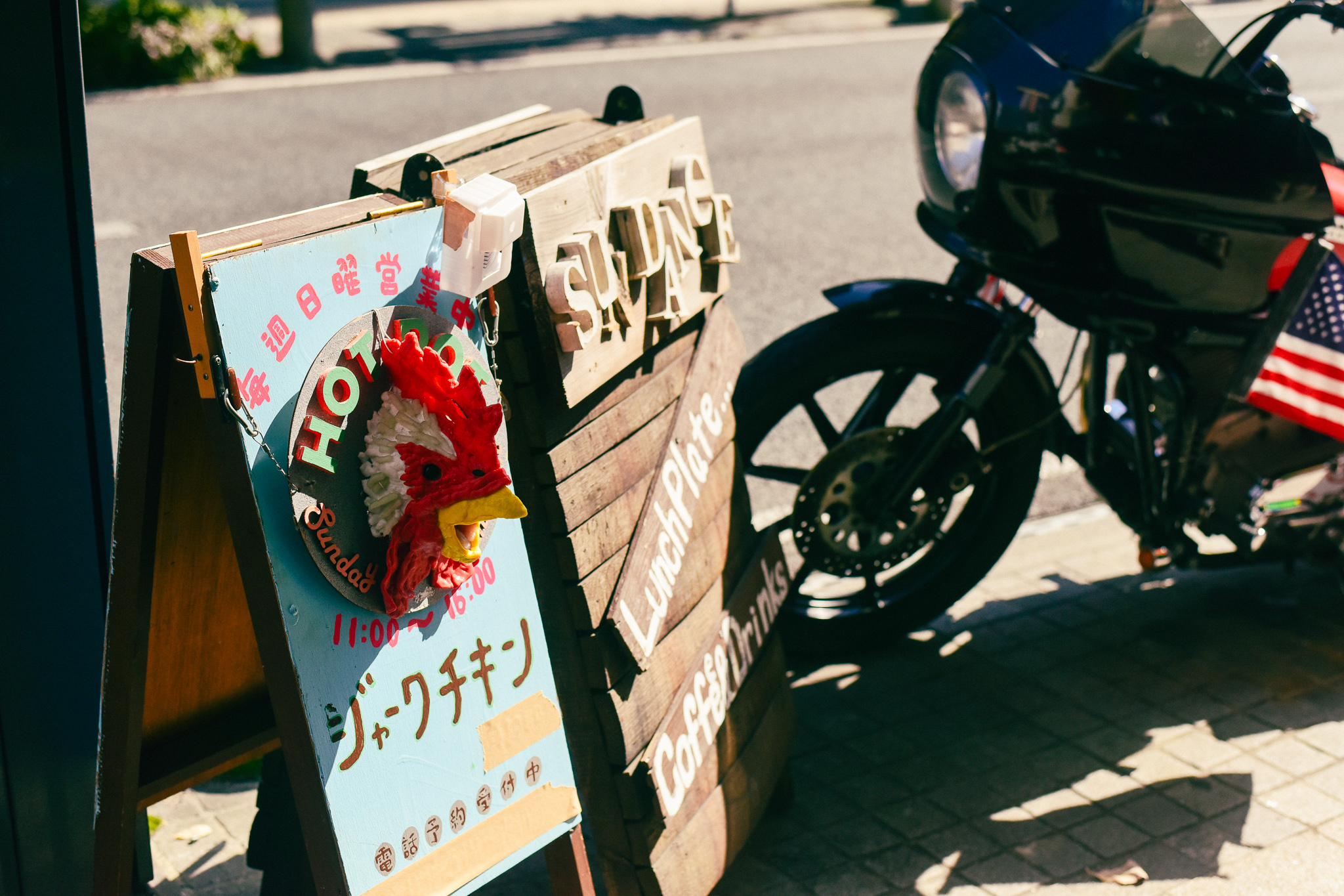 大きいバイクが並んでいて、チキンを食べながら談笑するファミリーがいて、漂う異国の日曜日感。