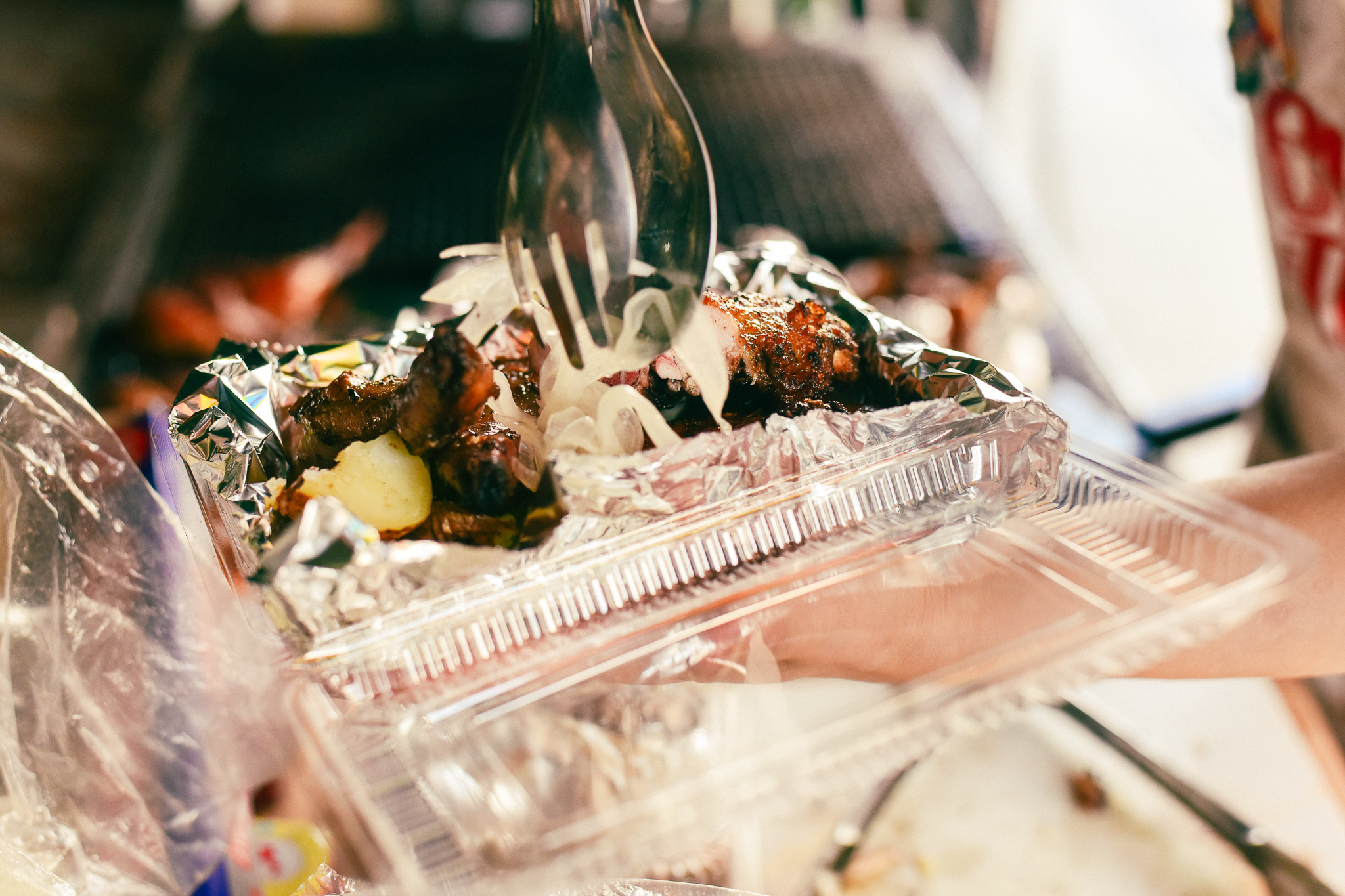 ごはん(おやつ?)にチキンを一つオーダーしました。チキンだけじゃないんだ!じゃがいももついてます。