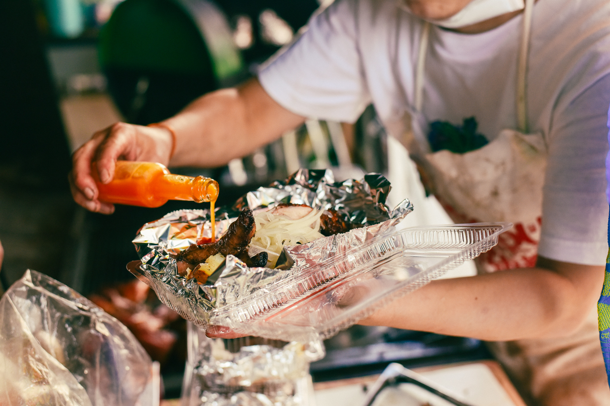 「辛いのは大丈夫?」と聞かれて、はい!と答えたら特製ソースをたっぷりかけてくれました。